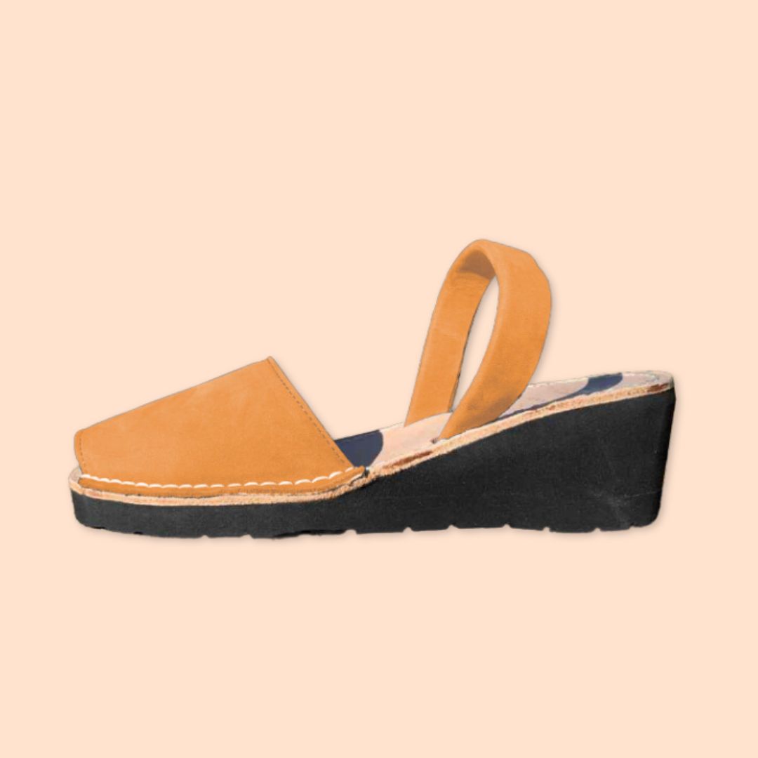 Mujer - Piel Nobuk - Cuña alta - Color Cuero