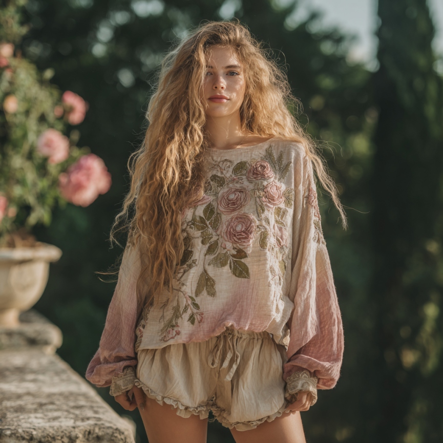 Vintage Floral Embroidered Linen Shirt